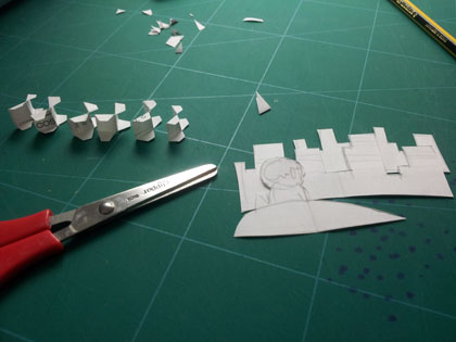 Lo malo de trabajar a este tamaño, sin embargo, es que las piezas pequeñas del despliegue se convierten en piezas minúsculas en el boceto y son complicadas de manipular. Lo bueno es que no se arrugan fácilmente.